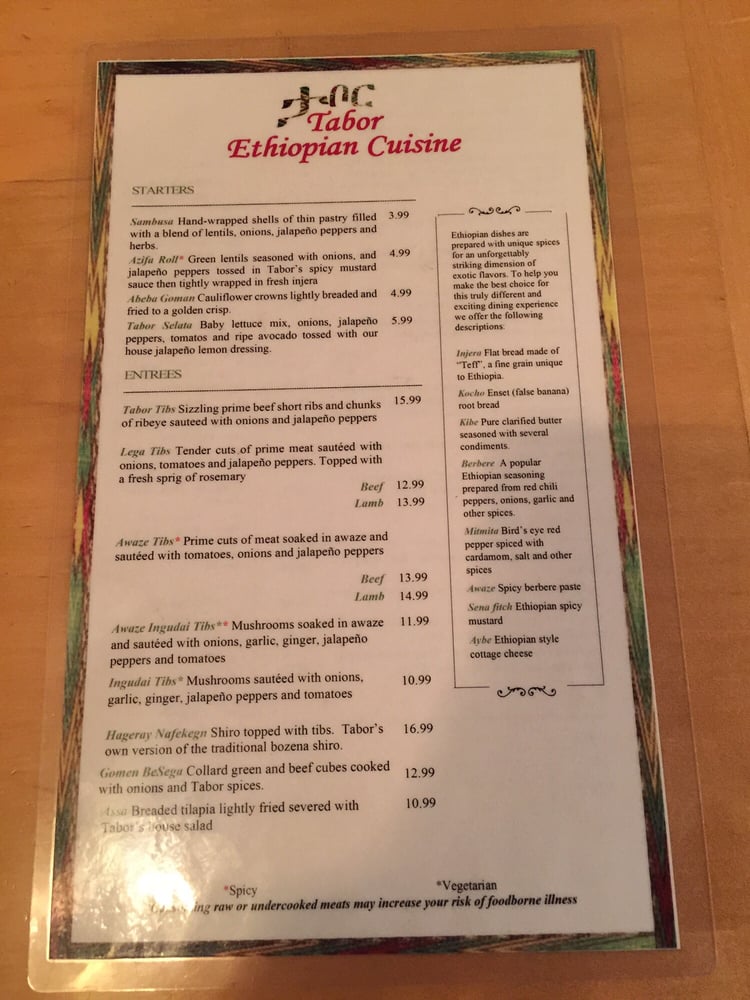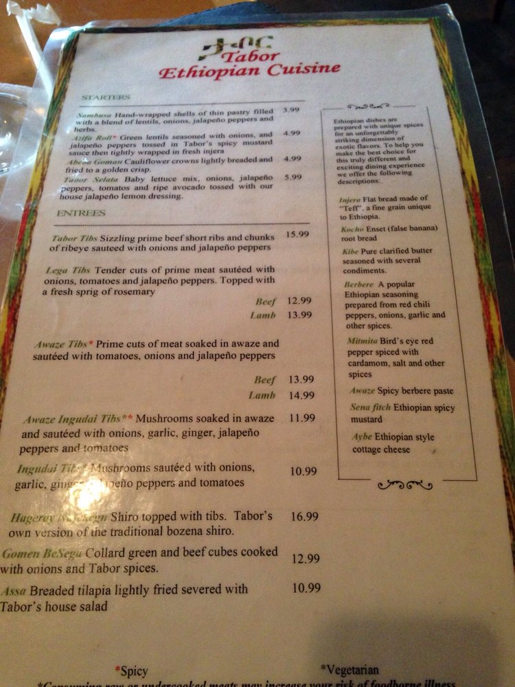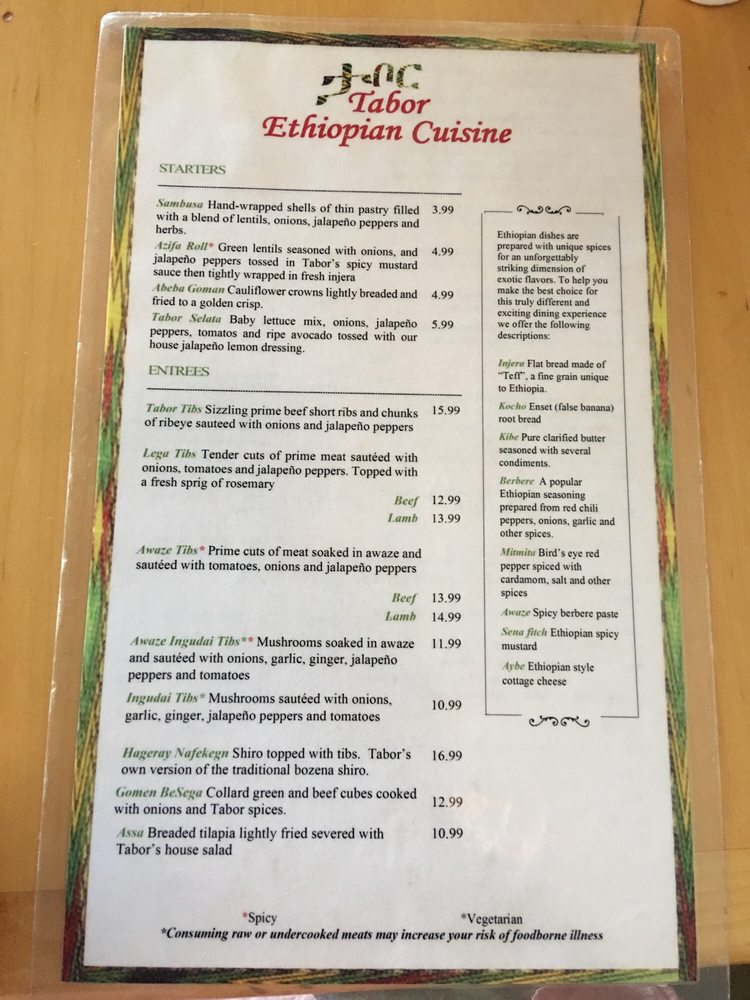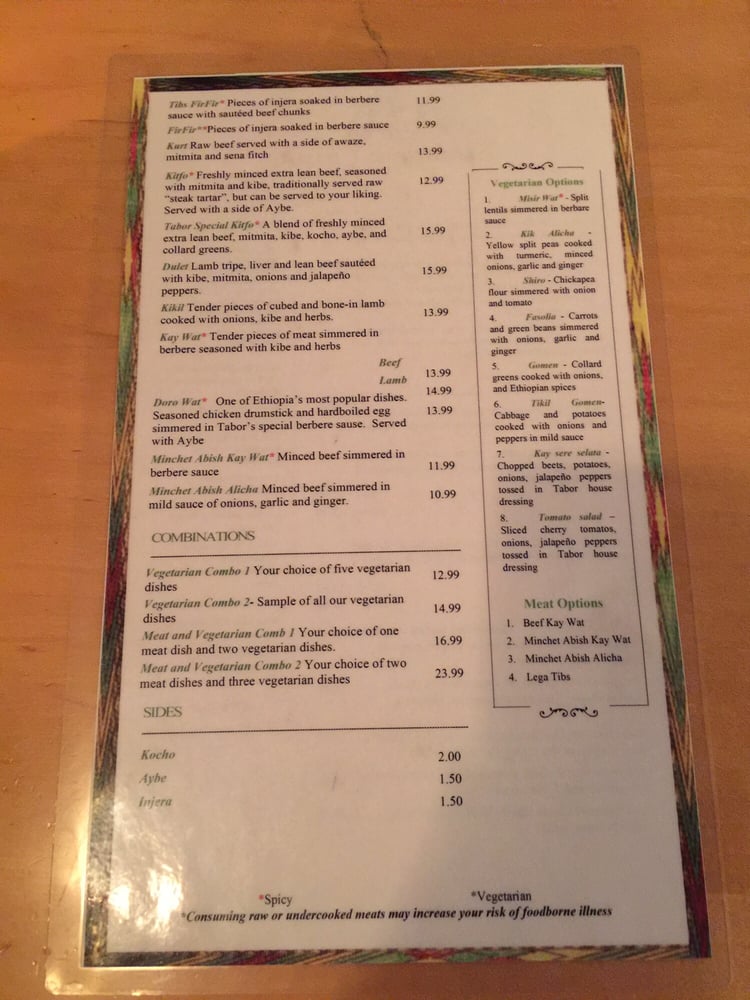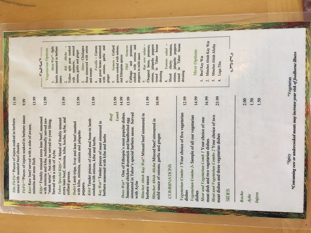 Abugida Ethiopian Cuisine and cafe Menu